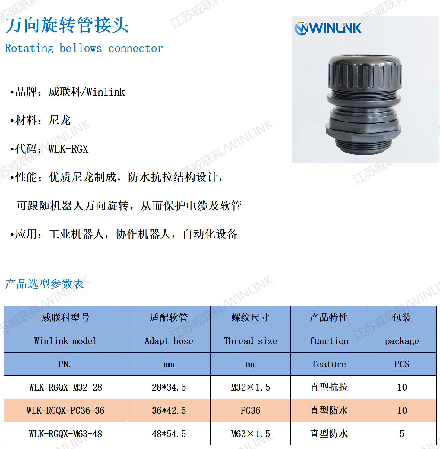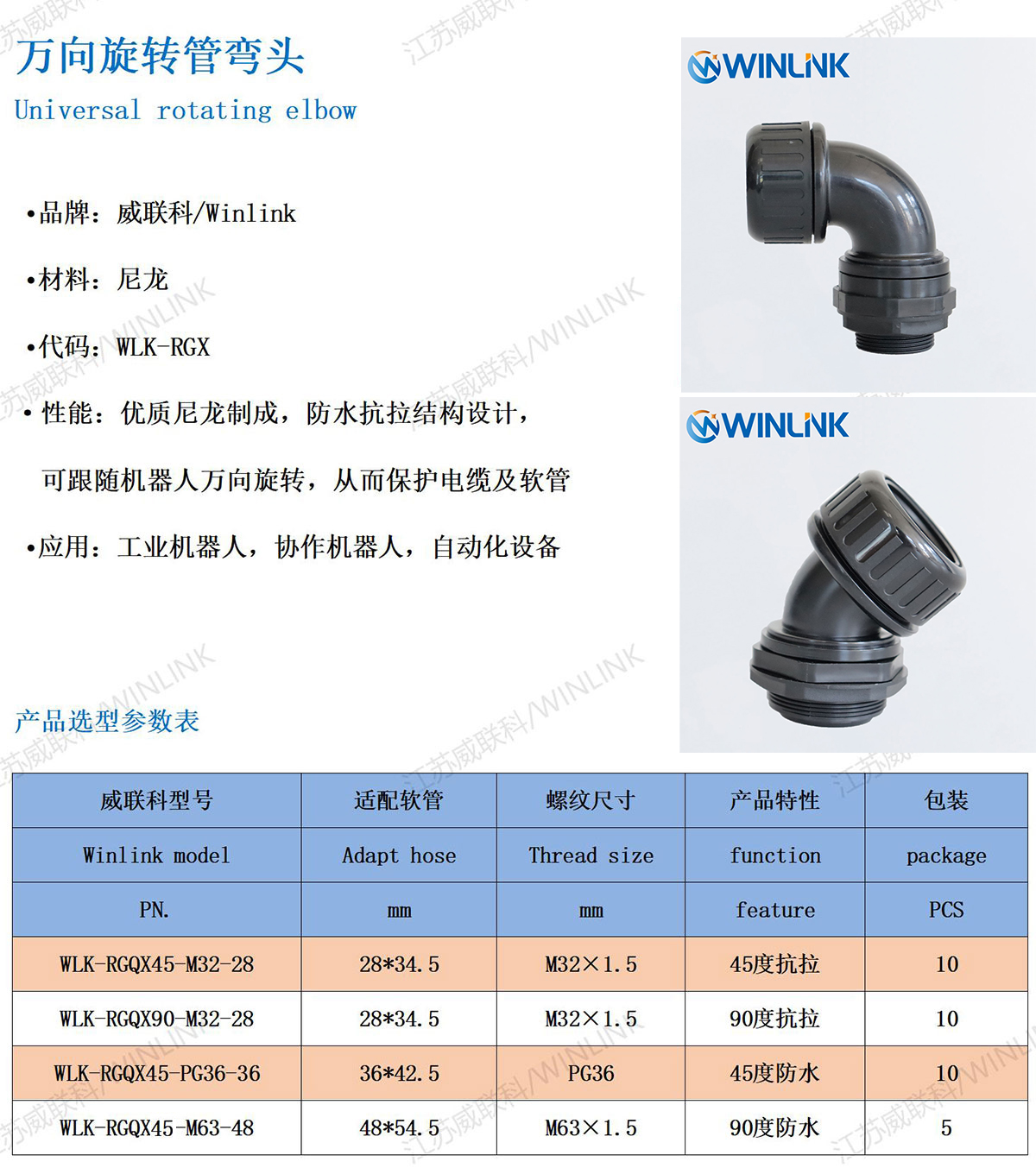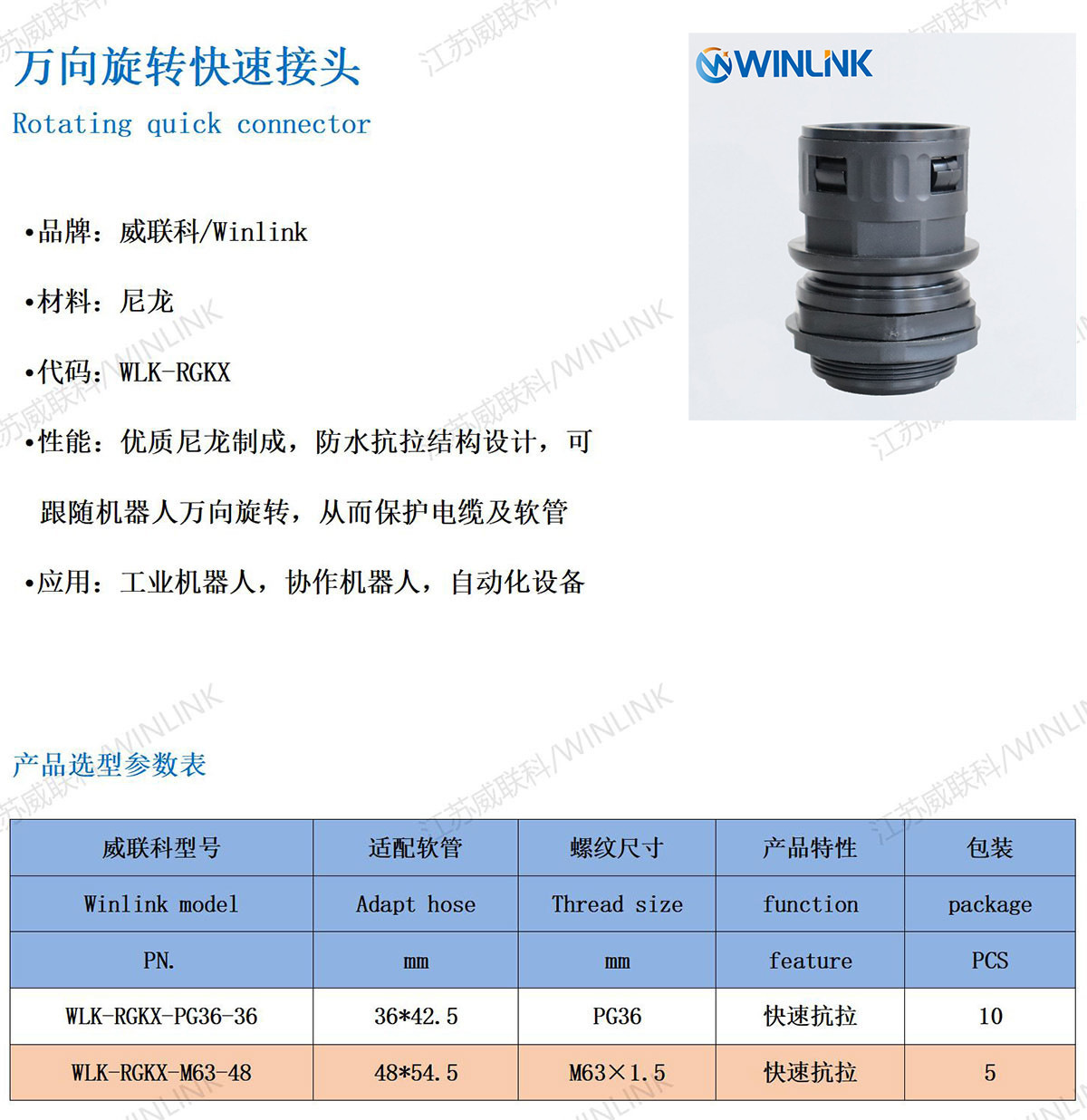 · 產(chǎn)品材料:改性尼龍 · 工作溫度:-40°~105°,短時可達(dá)120° · 產(chǎn)品性能:360度萬向旋轉(zhuǎn)