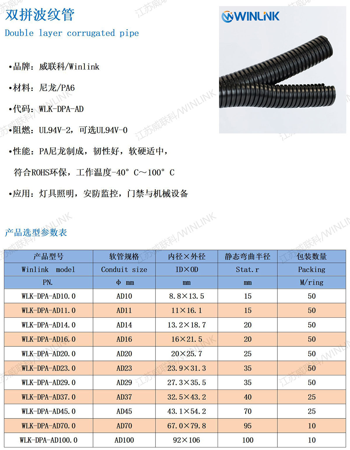 · 產(chǎn)品特性:威聯(lián)科品牌雙層管與接頭,尼龍材質(zhì)制成,穿線方便,安裝簡單 - 訂購熱線:19355360538