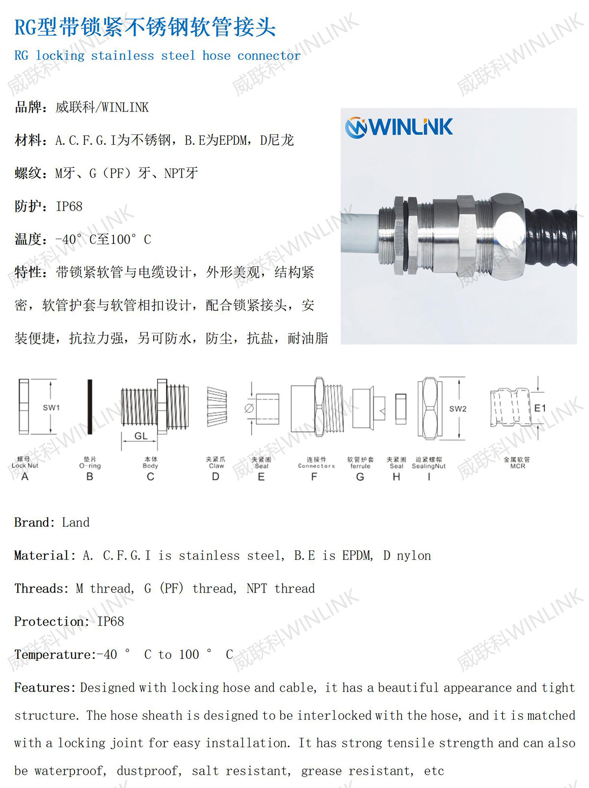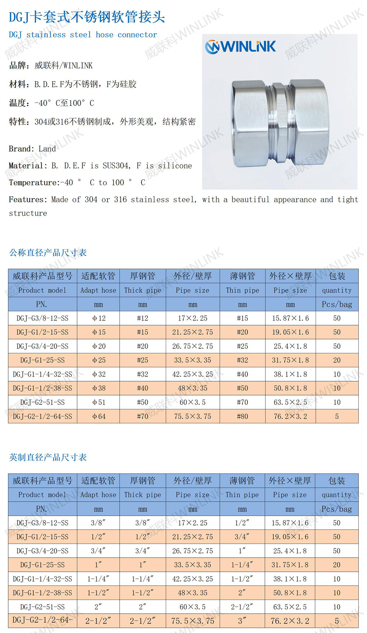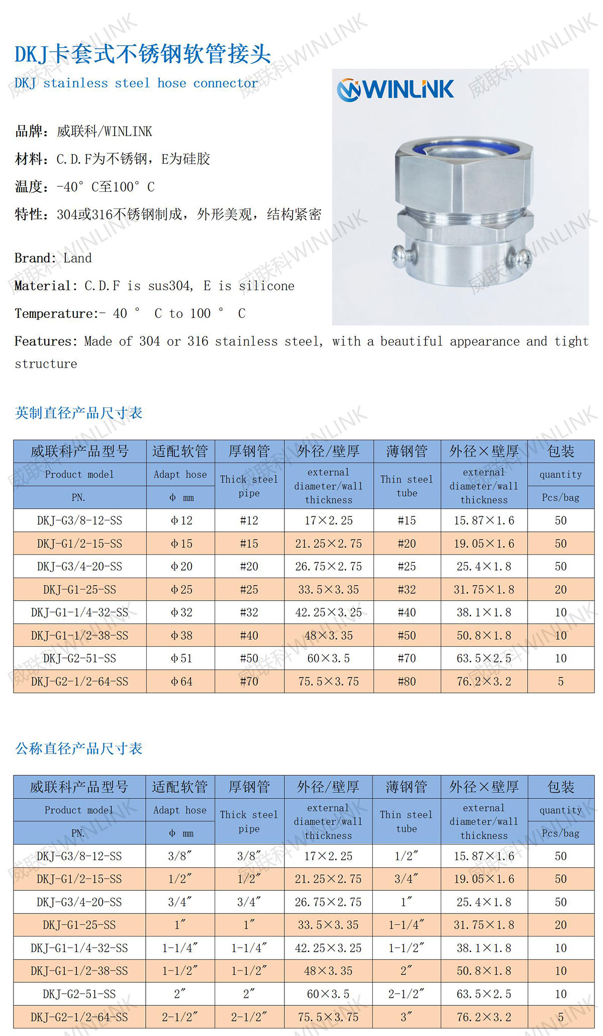 · 產(chǎn)品材料:不銹鋼材質(zhì) · 產(chǎn)品顏色:銀色 · 產(chǎn)品代碼:WLK-DP系列 · 產(chǎn)品特性:威聯(lián)科不銹鋼金屬軟管接頭,種類(lèi)齊全,有端接式,卡套式,自固式,彎角式,內(nèi)牙式等