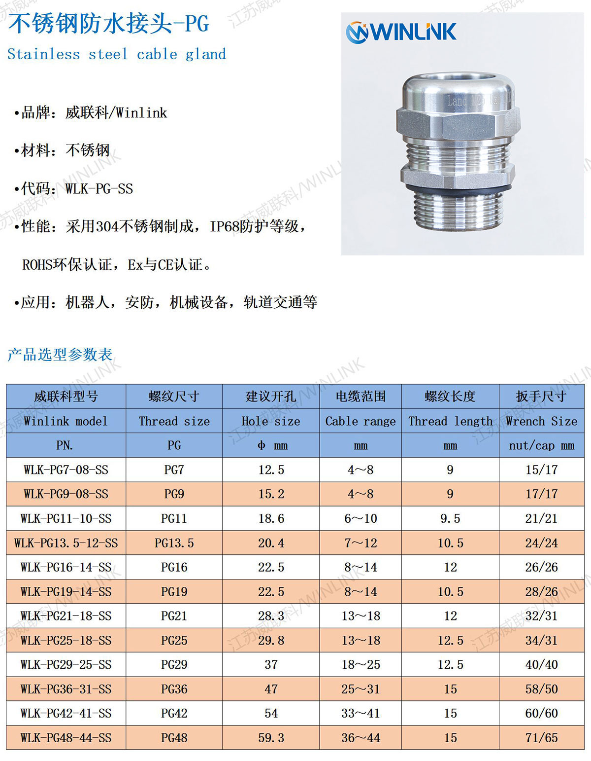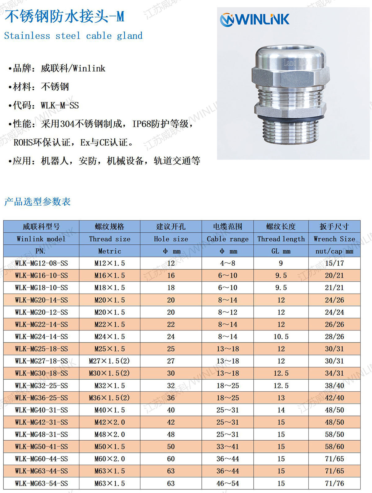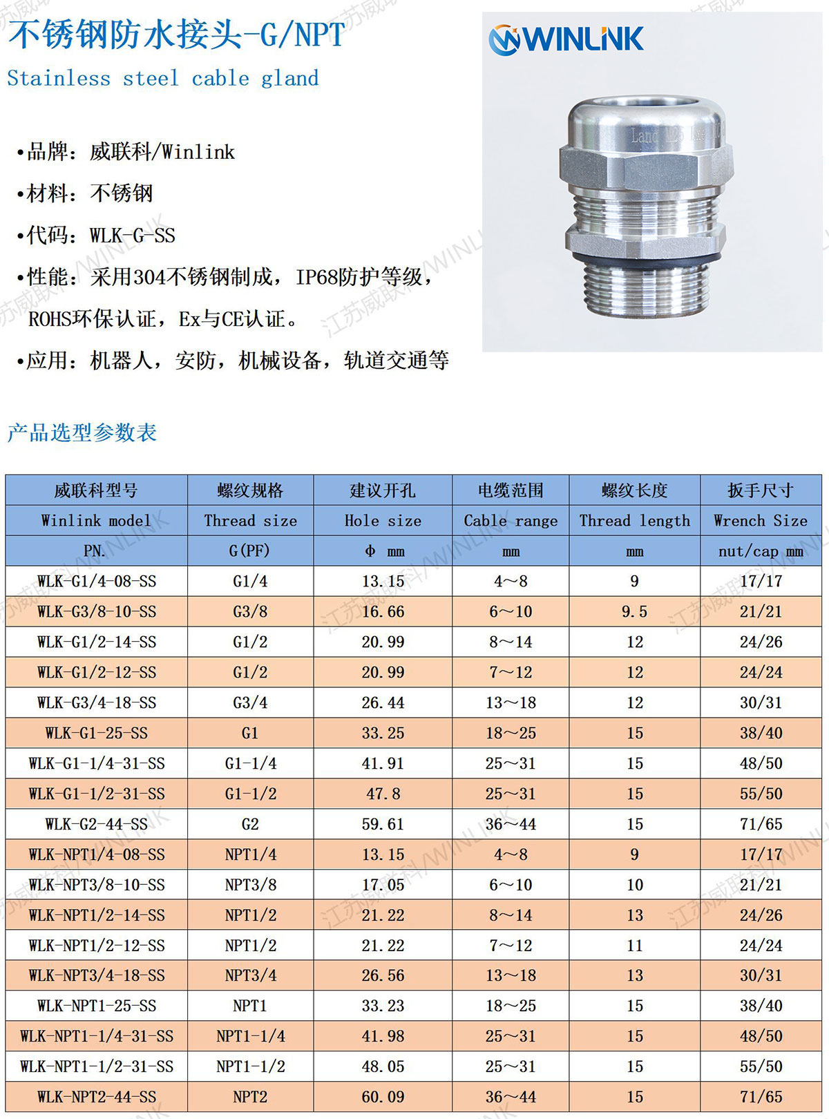 · 產(chǎn)品材料:304材質(zhì) · 工作溫度:-40°~105°,短時可達(dá)120° · 產(chǎn)品性能:CE/ROHS/IP68
